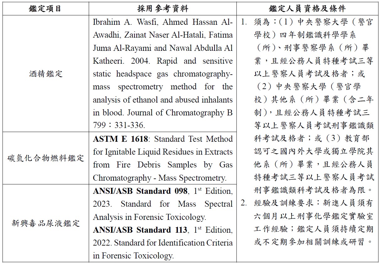 酒精、碳氫化合物燃料及新興毒品尿液鑑定(參考資料標準、鑑定人員資格及條件)