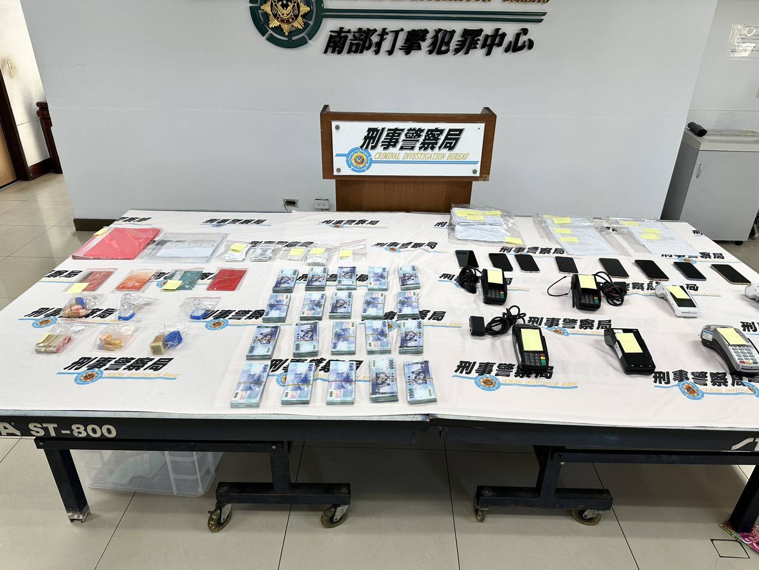 (一)為徹底打擊詐欺犯罪、斬斷不法金流,刑事警察局南部詐欺偵查中心於日前執行專案掃蕩行動,成功破獲一起詐欺、洗錢結合刷卡的新型態詐欺犯罪。本案主嫌郭○○等21人,利用開設實體店面作為掩護,以「刷卡換現金」之手法成為詐欺集團的「專屬套現水房」。經查該店面客源均透過詐欺集團一手轉介,對被害人進行虛假的刷卡購物作業,從中抽取高額手續費,待被害人取得現金後再依詐團指示面交予車手或轉購虛擬貨幣匯出,被害人慘遭層層剝皮,刑事警察局南部詐欺偵查中心接獲臺灣高雄地方檢察署交辦後,召集相關單位組成專案小組全力偵辦。
