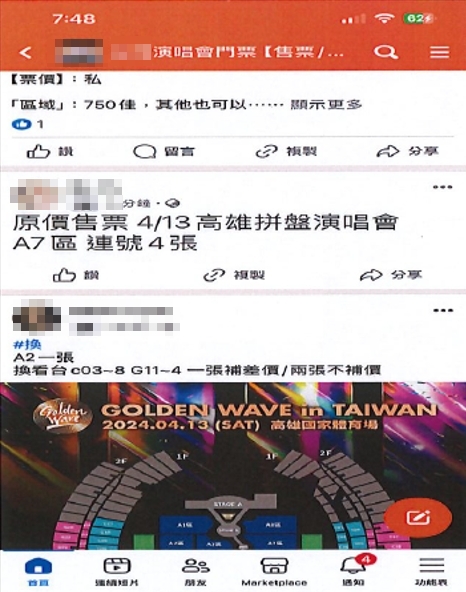(一) 刑事警察局偵查第九大隊(第三隊)日前偵破詐欺案,自收水成員扣案手機內發現多筆人頭帳戶照片及提領贓款影像等犯罪事證,循線擴大追查發現多名被害人於網路社群平臺收到假投資廣告訊息,與詐騙集團成員互加LINE好友後,經對方以話術誆稱可獲高額報酬,被害人信以為真進行多次投資,後續發現遭詐;另本案詐騙集團除誘騙被害人投資外,同時趁知名歌手舉辦演唱會期間,以假網拍方式販售演唱會門票詐騙多位歌迷,複合式從事詐騙犯行,以牟取不法利益。