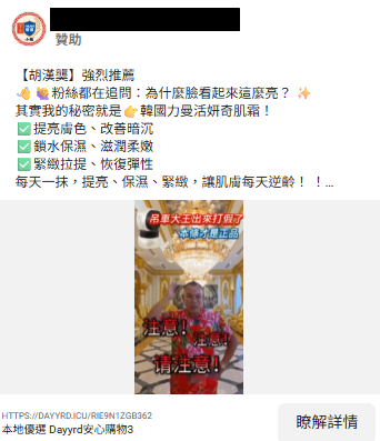 此外,臉書、Instagram、YouTube、LINE充斥偽冒名人之廣告、影片、粉專、帳號,詐騙集團運用深偽或AI生成技術偽造知名企業家、財經名人、股票分析師之影(圖)像及聲音,以推薦投資標的或代言來路不明商品,詐團藉名人知名度為幌子,實則施行投資詐騙、假網拍詐騙;刑事警察局呼籲民眾切勿輕信來路不明的網路廣告與貼文,尤其涉及「添加LINE好友」、「加入LINE群組」、「下載投資APP」等情形,均極可能為詐騙陷阱。遇有可疑訊息請撥打165反詐騙諮詢專線查證,並提醒親友提高警覺,共同守護網路安全環境,避免財產損失。