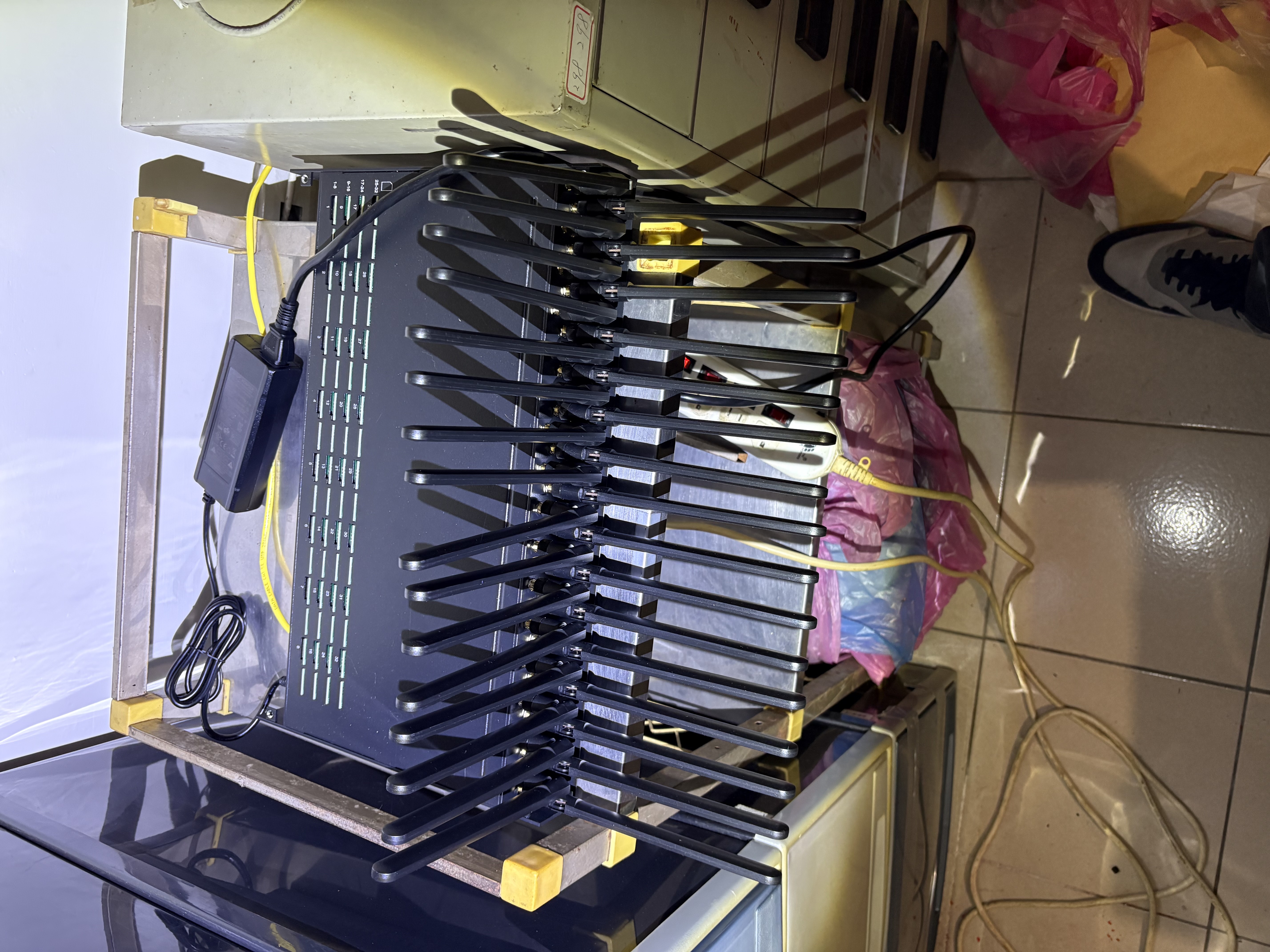 (三)專案小組在掌握充足事證後,報請臺灣臺北地方檢察署指揮偵辦,並於今(114)年5月及7月,先後在新北市、新竹縣等4處執行搜索、拘提,在新北市三重區詐欺機房查緝巫姓主嫌時,恰巧於門口撞見巫嫌,為避免滅證、串證,除暴特勤人員立即破門攻堅,強勢壓制、逮捕,另在其他機房查獲其餘3名共犯,當場查扣DMT節費器、卡池設備、SIM卡、工作手機等贓證物。